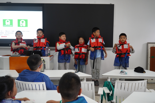 在航海技术学院的船舶模拟驾驶舱内,孩子们在专业教师指导下,亲手操控船舶航行系统。逼真的海浪模拟效果与港口实景三维画面,让孩子们仿佛置身真实航海场景,沉浸式感受现代航海技术的智能化魅力。国际航海旗语学习成为现场最热闹的团队竞技环节。孩子们分组掌握“A”“B” 等字母旗语符号后,以接力赛形式传递指令,在趣味比拼中理解航海通信的严谨性与团队协作的重要性。海上安全求生课程中,专业教师现场演示救生衣快速穿戴、应急信号弹发射等实用技能,并组织学员模拟 “落水救援” 实战场景。“我会做小船” 课程作为压轴环节,孩子们亲手拼搭出独一无二的小木船,举起小手“扬帆起航” 时,稚嫩的脸庞上绽放出满满的成就感与笑容。